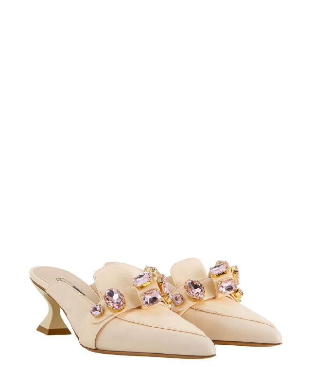 Leather shoes. Juwel accessory. Thin heel. Pointed shoes. Leather sole.