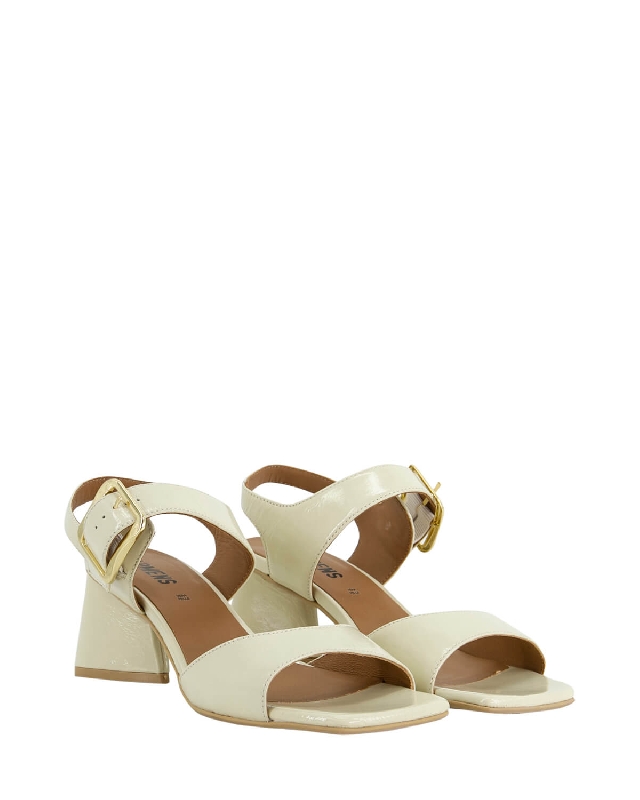 Leather shoes. Wide heel. Square toed tip. Clasp with strap.