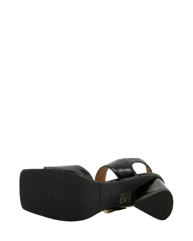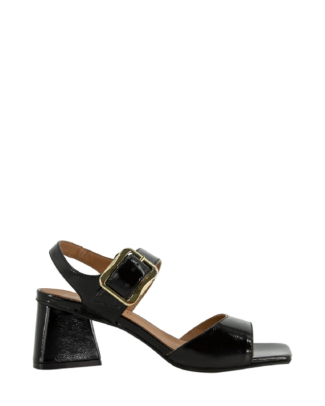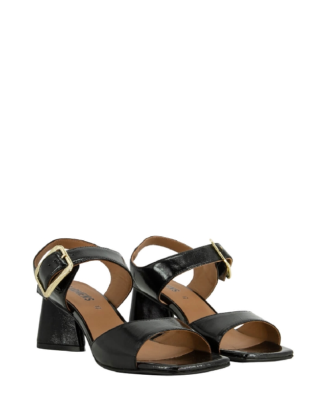 Leather shoes. Wide heel. Square toed tip. Clasp with strap.