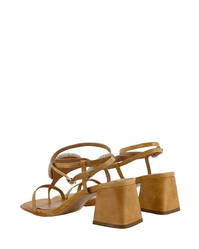Leather shoes. Juwel accessory. Wide heel. Rubber sole. Clasp with strap.
