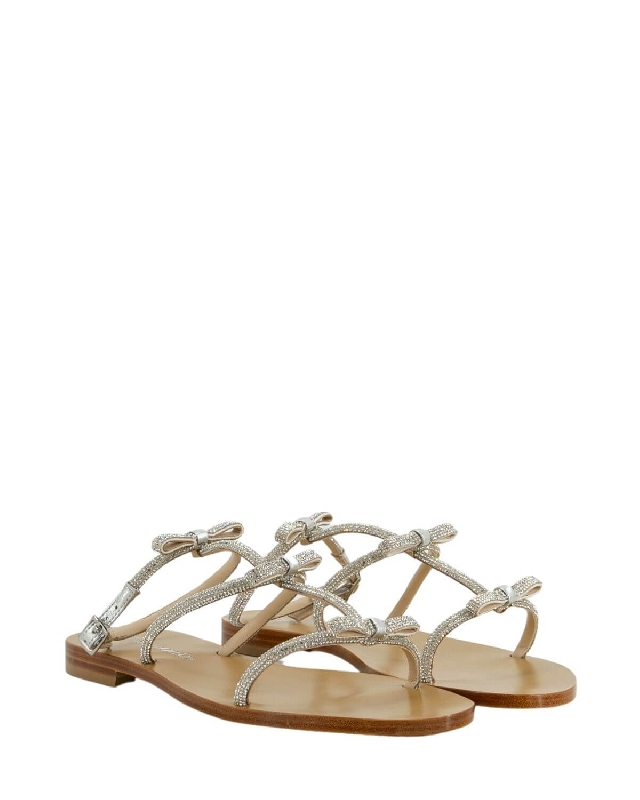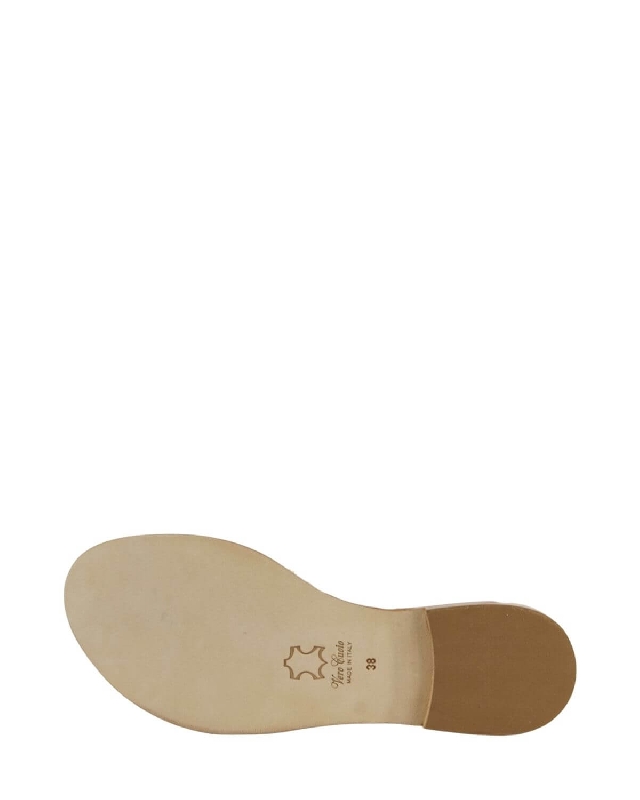 This sandal is made entirely of soft leather and features an upper embellished with jewels. Tuscan leather sole with logo.