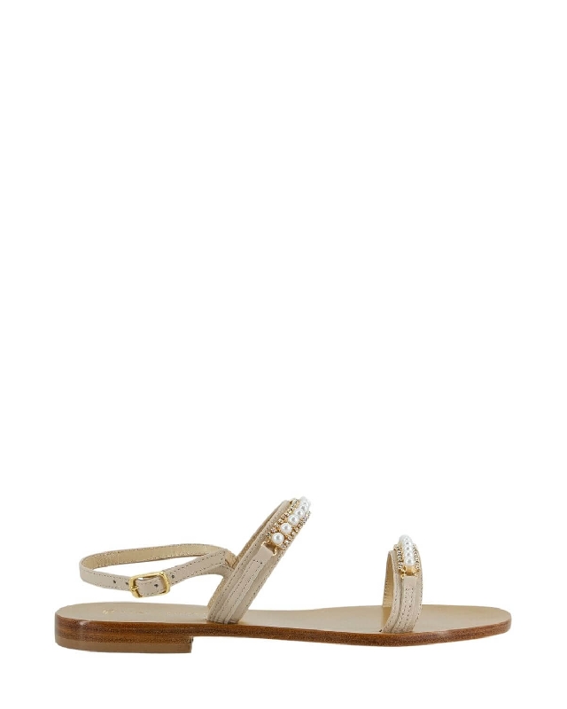 This sandal is made entirely of soft leather and features an upper embellished with jewels. Tuscan leather sole with logo.