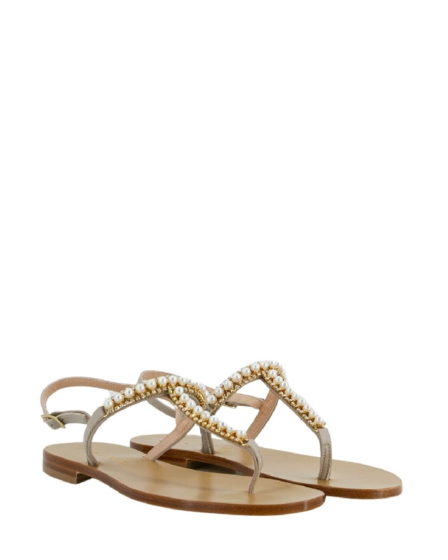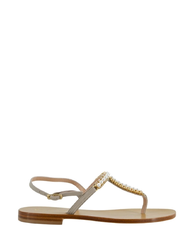 This sandal is made entirely of soft leather and features an upper embellished with jewels. Tuscan leather sole with logo.