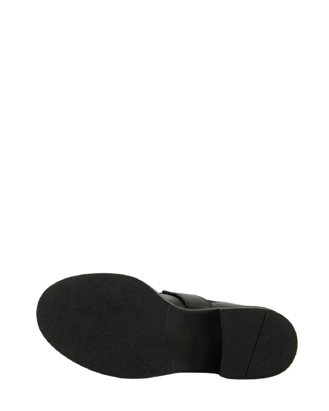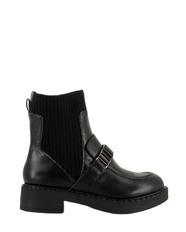 Timeless elegance and enveloping comfort come together in these leather ankle boots with accessory. Made of high-quality leather, they feature a refined metal strap that lends a rock accent to their design. The soft contrasting fabric on the upper gently wraps around the ankle, providing a pleasant feeling with every step. Ideal for a casual-chic look, these leather ankle boots with accessory are a must-have for the contemporary woman. Leather shoes. Low heel. Rubber sole. Without laces. The colour of the article may vary slightly depending on the device used for navigation.