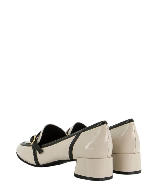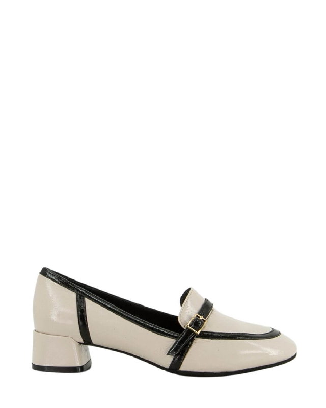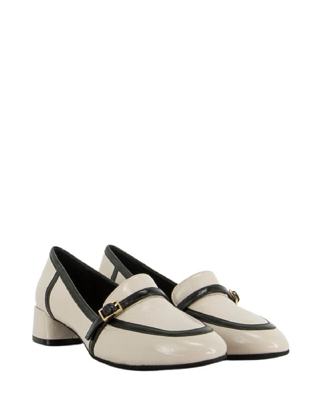 Leather shoes. Low heel. Rounded tip Rubber sole. Without laces. Clasp with strap. The colour of the article may vary slightly depending on the device used for navigation.