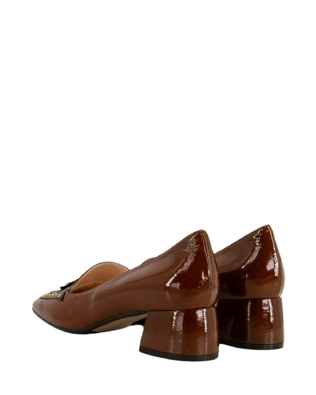 Leather shoes. Metallic detail on the front. Wide heel. Mid heel. Rubber sole. The colour of the article may vary slightly depending on the device used for navigation.