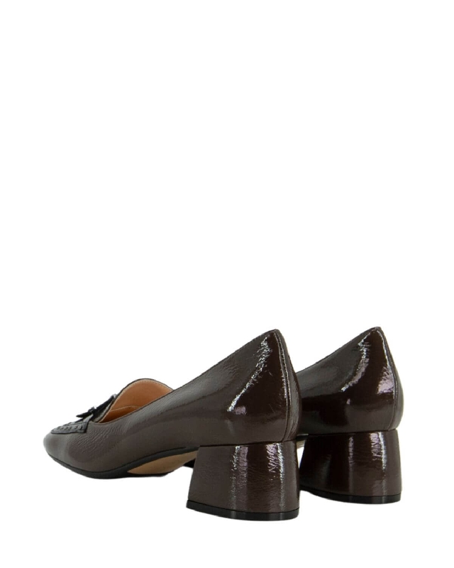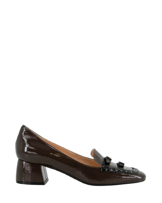 Leather shoes. Metallic detail on the front. Wide heel. Mid heel. Rubber sole. The colour of the article may vary slightly depending on the device used for navigation.
