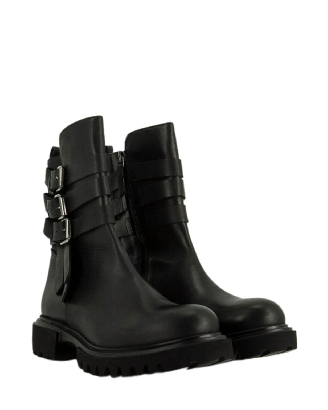 Leather shoes. Low heel. Rounded tip Rubber sole. Clasp with strap. The colour of the article may vary slightly depending on the device used for navigation.