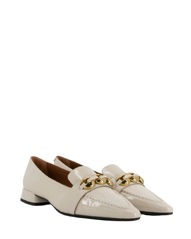 This loafer provides an elegant and sophisticated look. Its versatility makes it suitable for various occasions, from work to leisure, guaranteeing style at all times. Leather shoes. Metallic detail on the front. Low heel. Pointed shoes. Pointed cut. Rubber sole. The colour of the article may vary slightly depending on the device used for navigation.