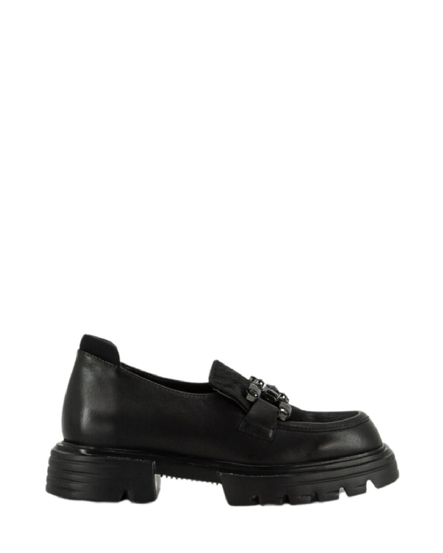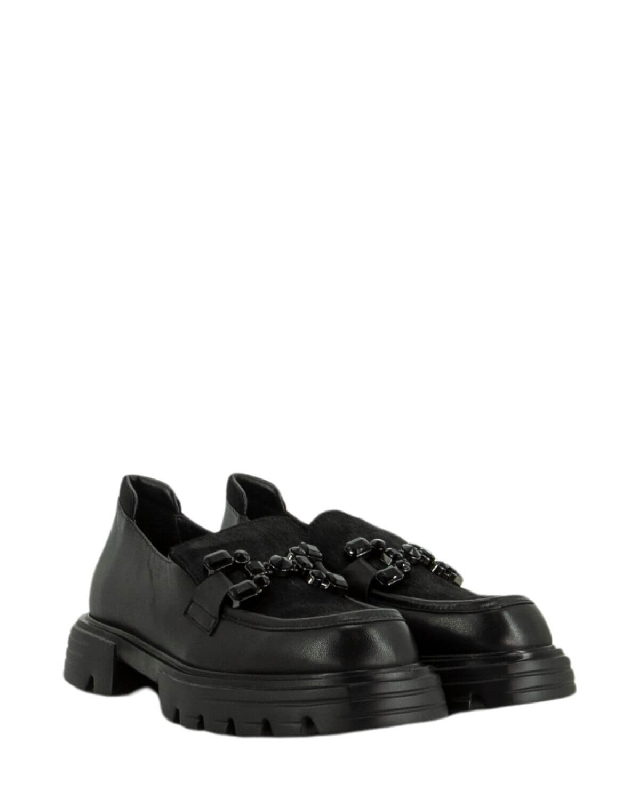 This line is designed for those who want to combine functionality with a strong sense of aesthetics and find the perfect balance between comfort and class. Leather shoes. Juwel accessory. Low heel. Rounded tip Rubber sole. The colour of the article may vary slightly depending on the device used for navigation.