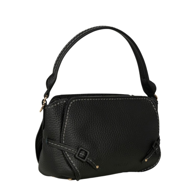 BAGS : The colour of the article may vary slightly depending on the device used for navigation. BAGS : Leather bag. BAGS : Leather lining. BAGS : Small interior compartment. BAGS : Zip closure. BAGS : Adjustable bag strap. BAGS : Compartment on the back side. BAGS : Leather grip.