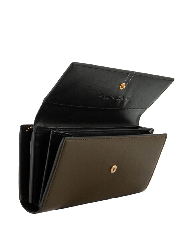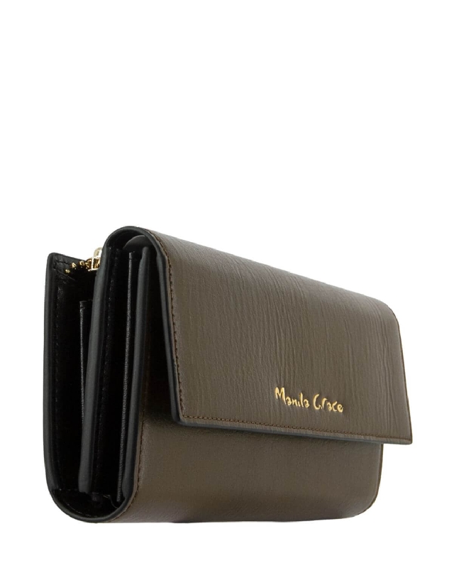Compact and handy wallet made of medium-sized imitation leather. The wallet closes with a flap on the front. The geometric design is embellished with the contrasting Manila Grace logo, which is elegant and discreet.