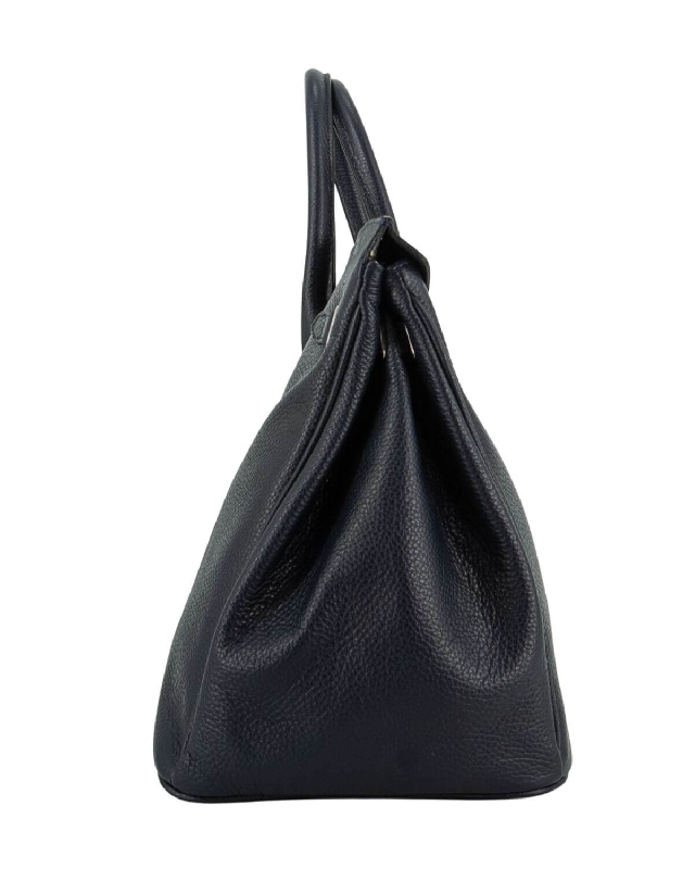 Handmade calfskin bag with deer print.lined with boar leather inside. Flap and twist closure. Two sturdy leather handles and a detachable and adjustable leather shoulder strap. Inside zipped pocket, inside mobile phone pocket, inside leather document pocket. Bottom protective metal feet. The colour of the article may vary slightly depending on the device used for navigation.