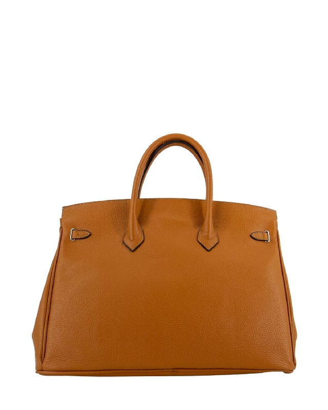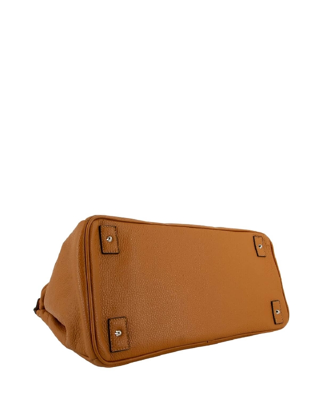 Handmade calfskin bag with deer print.lined with boar leather inside. Flap and twist closure. Two sturdy leather handles and a detachable and adjustable leather shoulder strap. Inside zipped pocket, inside mobile phone pocket, inside leather document pocket. Bottom protective metal feet. The colour of the article may vary slightly depending on the device used for navigation.