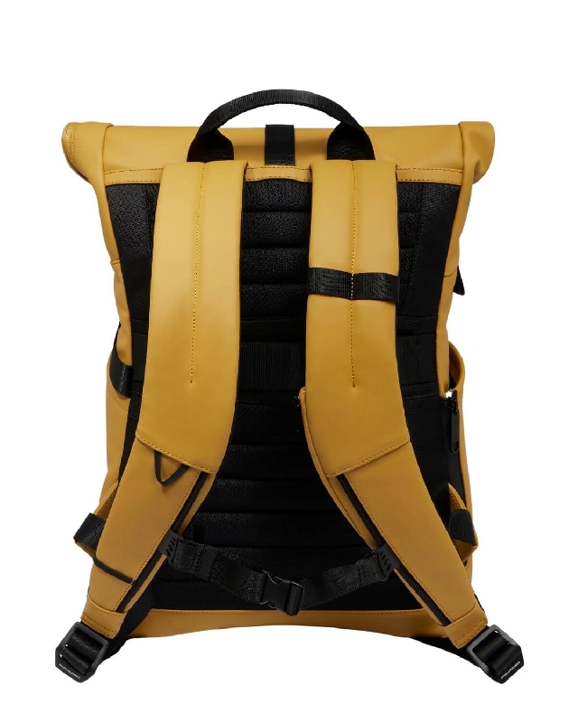 Water-resistant roll-top backpack for PC and iPad® with chest strap, padlock and bike light attachments, RFID protection.