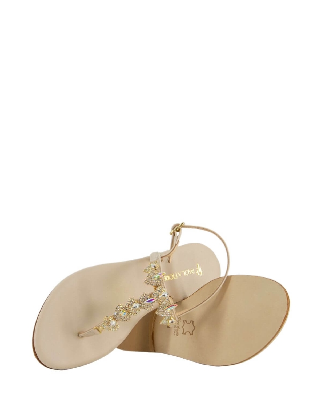 The design of Paola Fiorenza's sandals is characterized by simple elegance. Thanks to the decorative rhinestones, the sandals have a sophisticated and refreshing touch that goes perfectly with summery looks. Leather shoes. Juwel accessory. Low heel. Leather sole. The colour of the article may vary slightly depending on the device used for navigation.