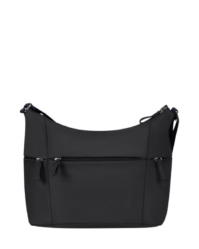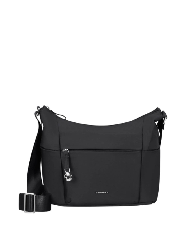 Shiny nickel zipper pullers. Multiple exterior pockets for great organization. Samsonite metal logo.
