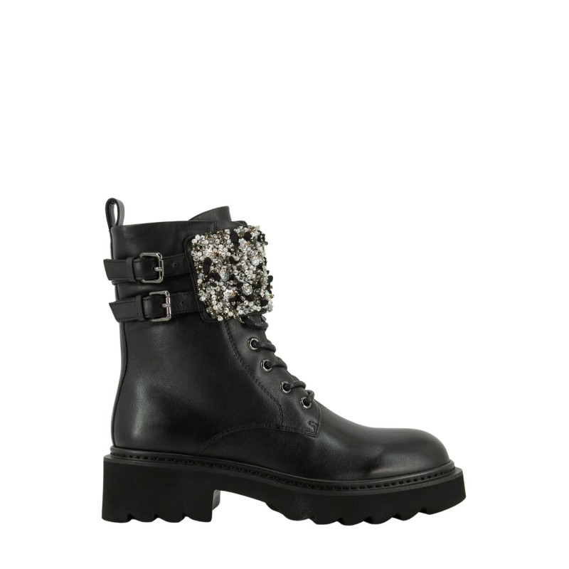 SCARPE : Il colore dell'articolo può variare leggermente a seconda del dispositivo utilizzato per la navigazione. SCARPE : Scarpe in pelle. SCARPE : Chiusura con lacci. SCARPE : Chiusura con zip. SCARPE : Applicazioni in gioiello. SCARPE : Suola carrarmato.