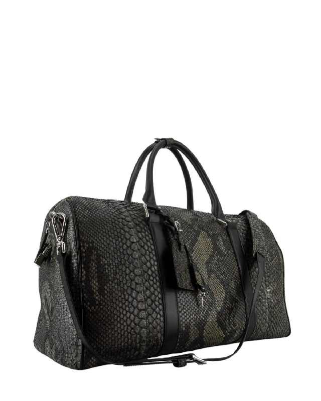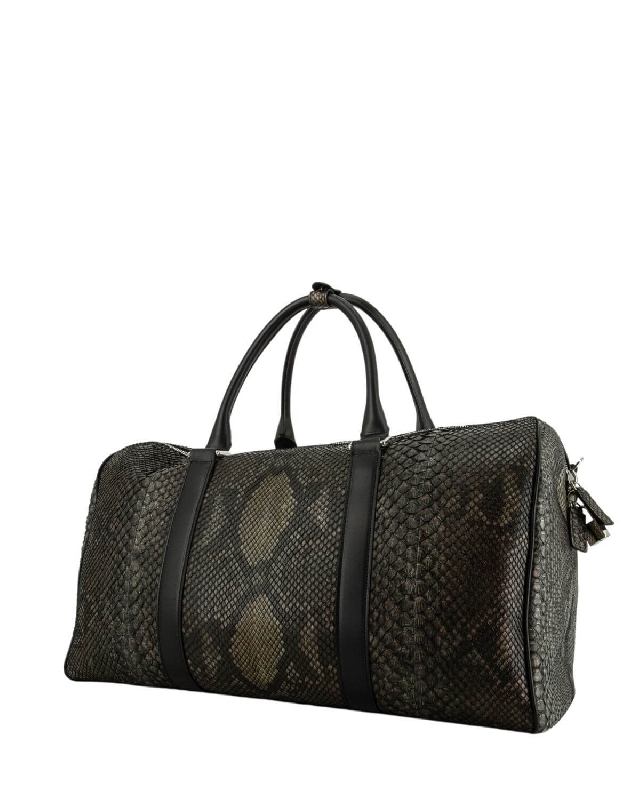Borsone da viaggio in vera pitone. Chiusura con zip. Interno in tessuto. Tasche interne. Piedini. Tracolla in pelle inclusa.
