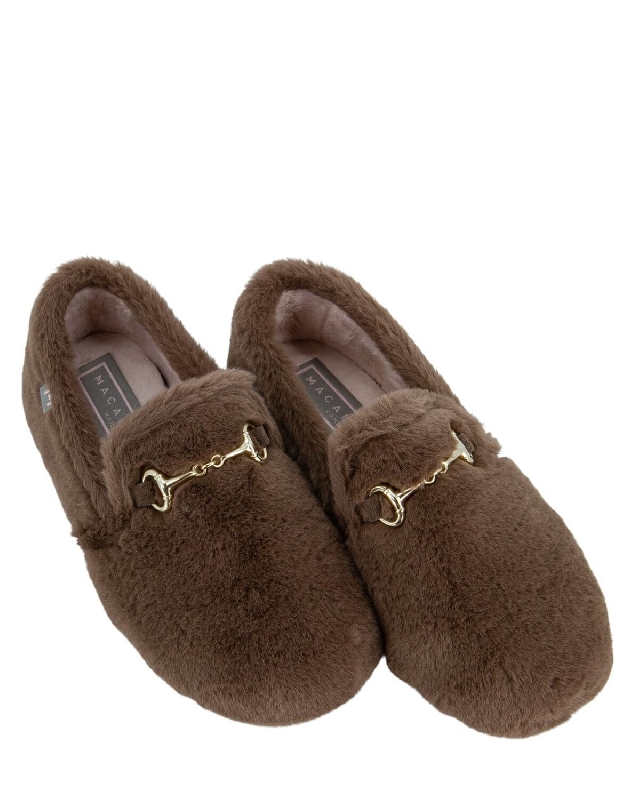 Pantofole in morbida pelliccia di orsacchiotto.Decorate con una fibbia in metallo dorato.Altezza suola 1 cm. Soletta rimovibile in poliuretano. Il colore dell'articolo può variare leggermente a seconda del dispositivo utilizzato per la navigazione.