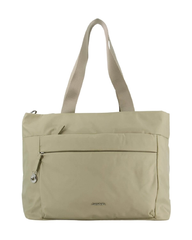 Tirelli in nickel lucido. Organizzazione esterna con molte tasche. Logo Samsonite in metallo.