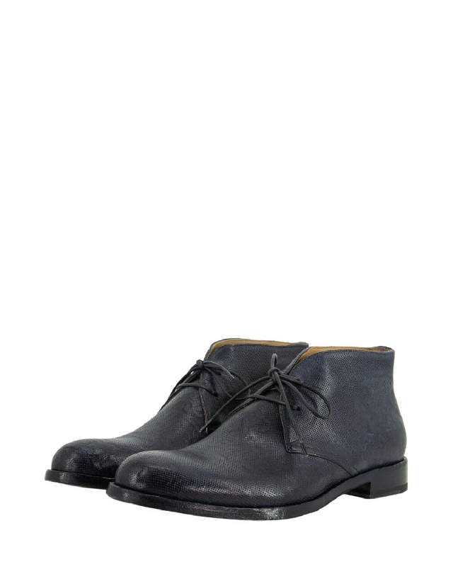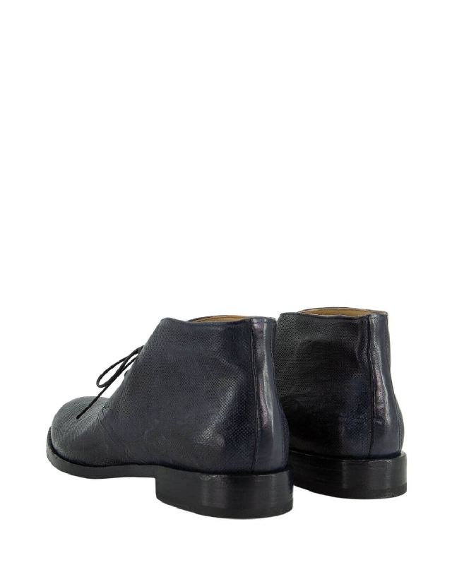 Scarpe stringate alte in pelle lavorata. Chiusura con lacci. Suola in cuoio.