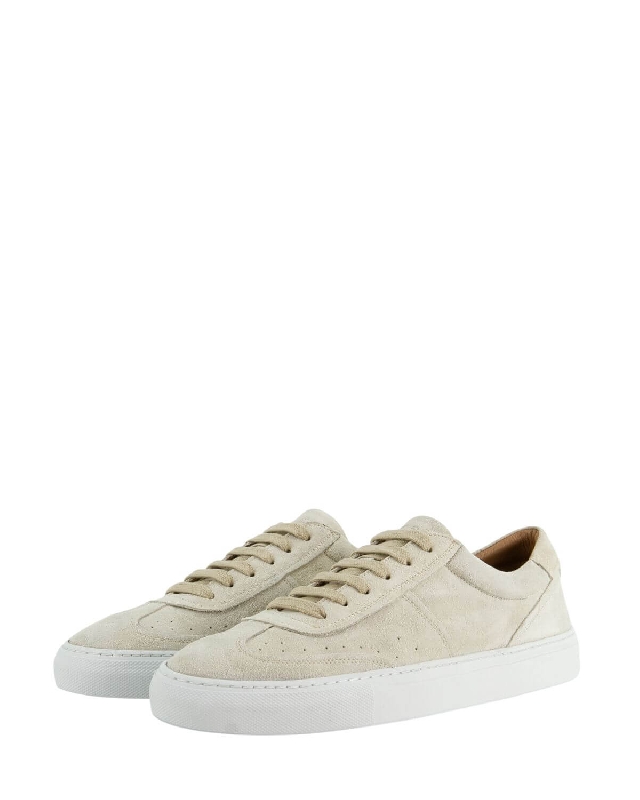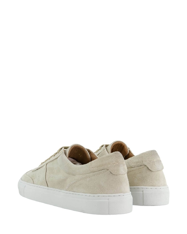 Sneakers in pelle scamosciata. Chiusura con lacci. Suola in gomma. Punta tonda.