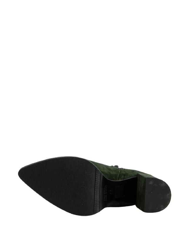Chiusura con zip laterale. Scarpe a punta. Scarpe in pelle scamosciate. Tacco largo.