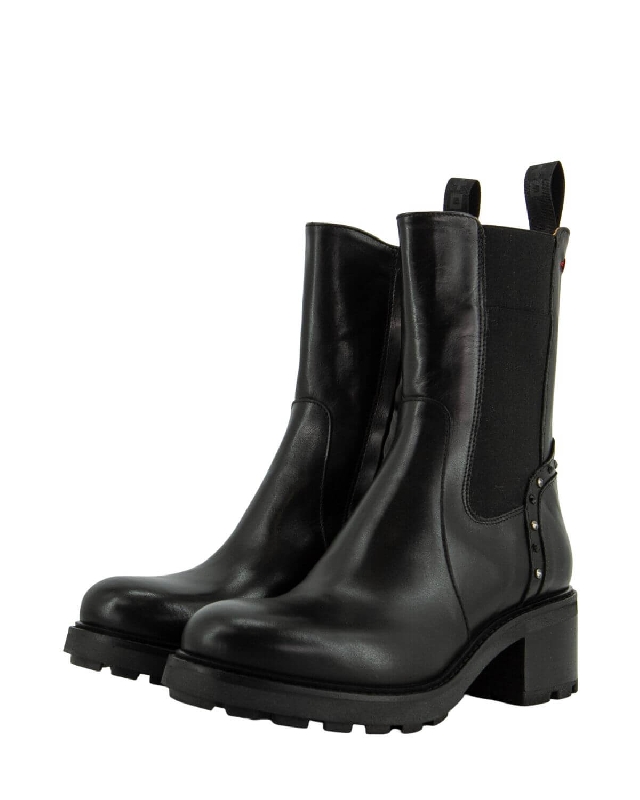 Stivaletti in pelle con inserti elasticizzati laterali. Chiusura con zip. Suola a carrarmato.