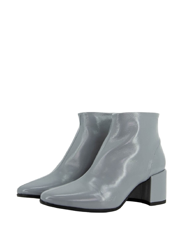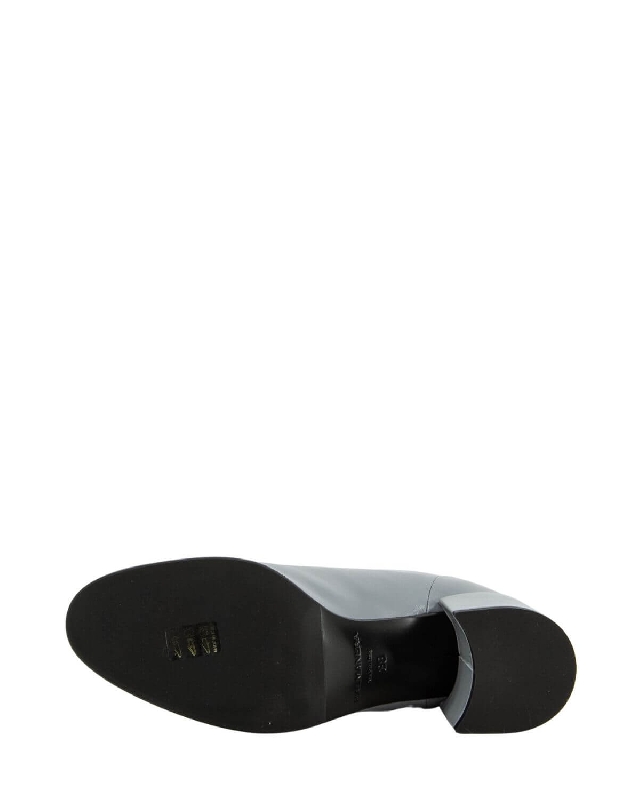 Scarpe in pelle. Tacco largo. Punta tonda. Chiusura con zip.