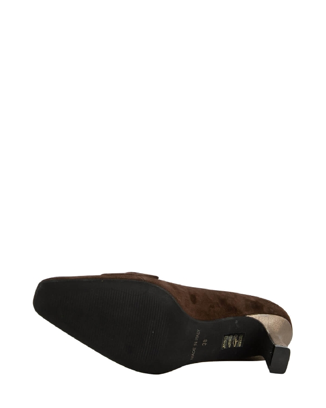 Scarpe in pelle scamosciate. Tacco fino. Punta smussata. Suola in gomma.