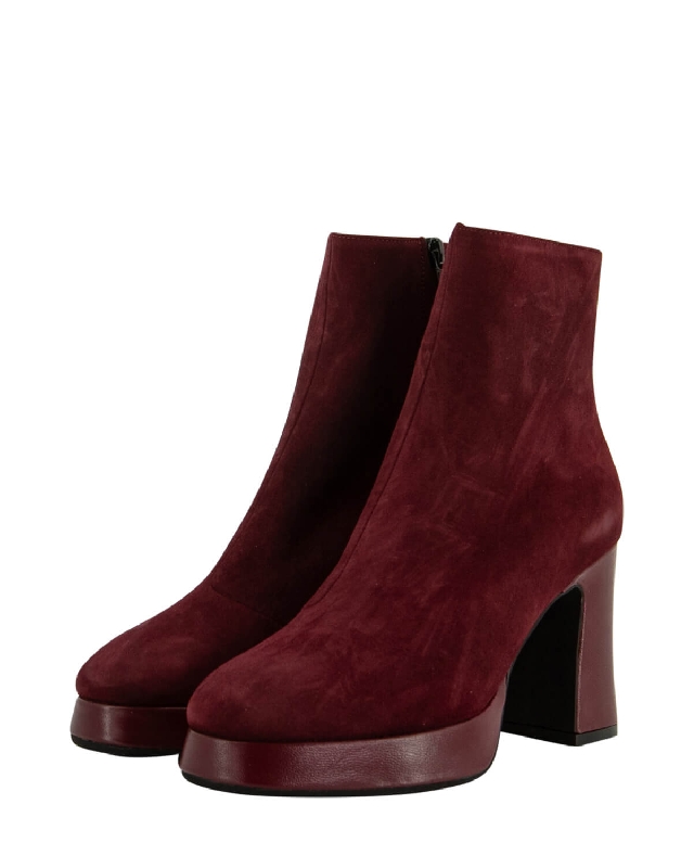 Scarpe in pelle scamosciate. Tacco largo. Punta tonda. Chiusura con zip laterale.