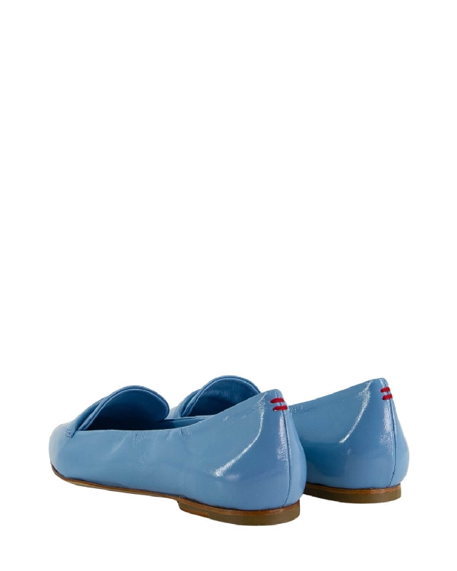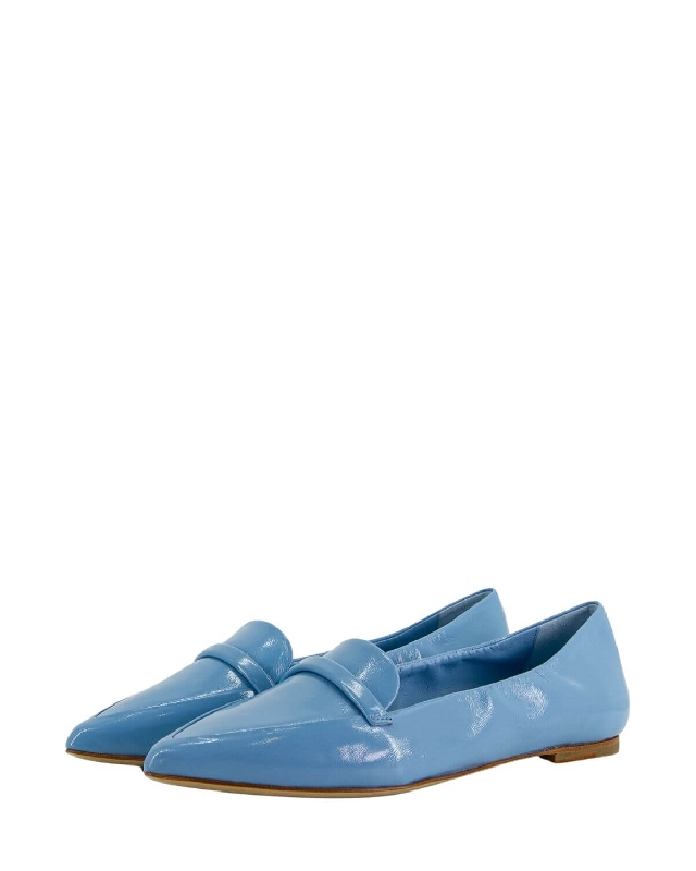 Mocassini in pelle lucida. Scarpa a punta. Tacco basso. Suola in cuoio e gomma.
