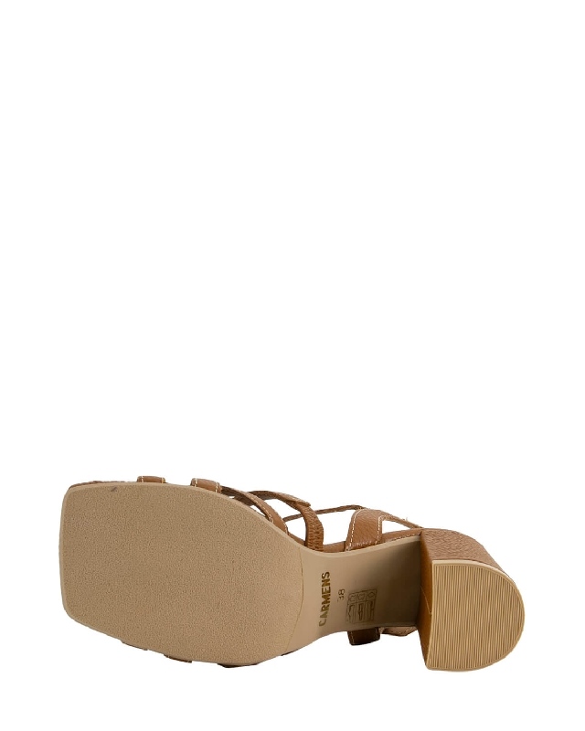 Scarpe in pelle. Tacco largo. Punta squadrata. Suola in gomma. Chiusura con cinturino.