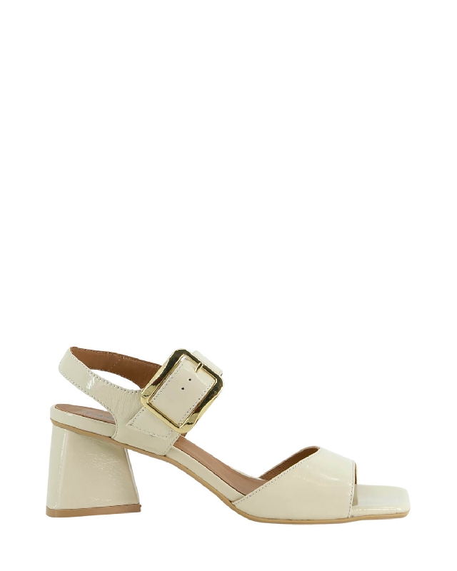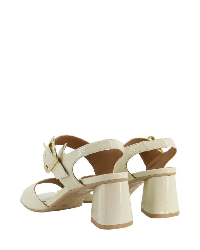 Scarpe in pelle. Tacco largo. Punta squadrata. Chiusura con cinturino.