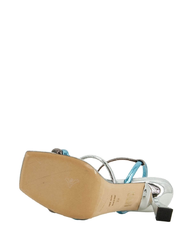 Scarpe in pelle. Tacco fino. Punta squadrata. Suola in cuoio. Chiusura con cinturino.