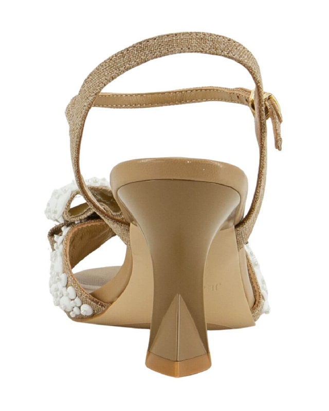 Scarpe in tessuto. Tacco fino. Suola in gomma. Chiusura con cinturino.
