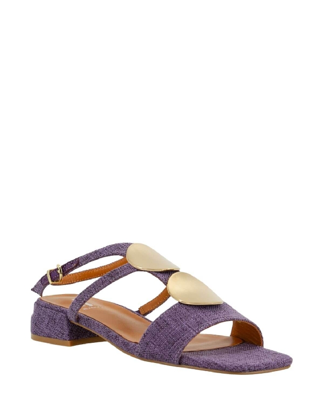 Scarpe in tessuto. Tacco largo. Suola in gomma. Chiusura con cinturino.