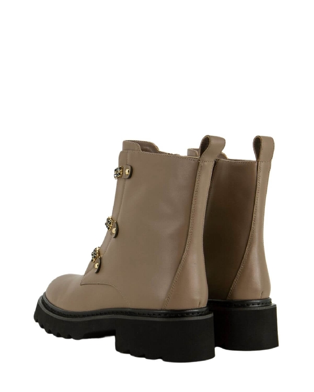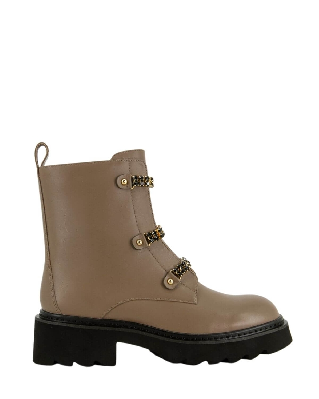 Questi anfibi decorati con accessori gioiello sono realizzati in morbida pelle . La suola a carrarmato garantisce comfort e stabilità, mentre i raffinati accessori con strass al posto dei lacci li rendono unici. Dotati di una comoda zip laterale, gli anfibi con accessorio gioiello sono l'opzione ideale per chi desidera un look audace e moderno, prestando attenzione ai dettagli stilistici: possono essere abbinati a una t-shirt oversize e a una giacca di pelle, oppure a un abito nero con un blazer, risultando adatti per ogni occasione. Scarpe in pelle. Tacco medio. Punta tonda. Suola in gomma. Il colore dell'articolo può variare leggermente a seconda del dispositivo utilizzato per la navigazione.