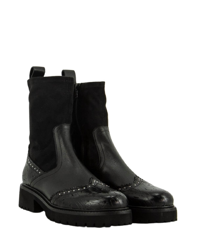 Stivaletti con dettagli borchiati, perfetti per aggiungere un tocco di audacia al tuo guardaroba. La loro versatilità consente di abbinarli facilmente a diversi outfit, dal casual all'elegante. Scarpe in pelle. Tacco basso. Punta tonda. Suola in gomma. Chiusura con zip laterale. Il colore dell'articolo può variare leggermente a seconda del dispositivo utilizzato per la navigazione.