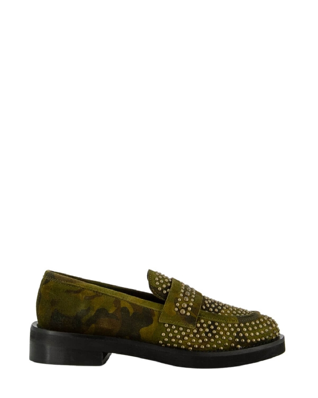 Scarpe in pelle scamosciate. Tacco basso. Punta tonda. Suola in gomma. Senza lacci. Il colore dell'articolo può variare leggermente a seconda del dispositivo utilizzato per la navigazione.