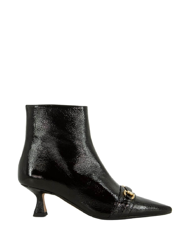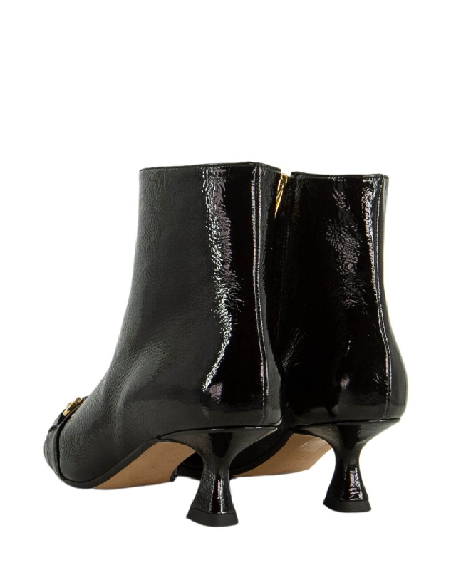 Scarpe in pelle. Dettaglio metallico frontale. Tacco fino. Tacco medio. Scarpe a punta. Forma appuntita. Suola in gomma. Il colore dell'articolo può variare leggermente a seconda del dispositivo utilizzato per la navigazione.
