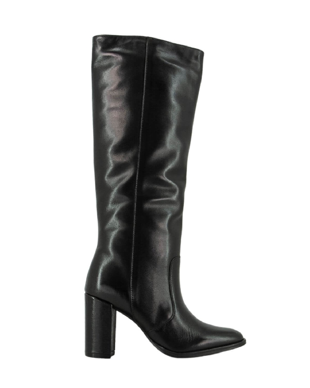 Modello a tubo fino al ginocchio, dotato di una mezzazip interna per agevolare l'indossamento. Scarpe in pelle. Tacco alto. Forma appuntita. Suola in gomma. Chiusura con zip laterale. Il colore dell'articolo può variare leggermente a seconda del dispositivo utilizzato per la navigazione.