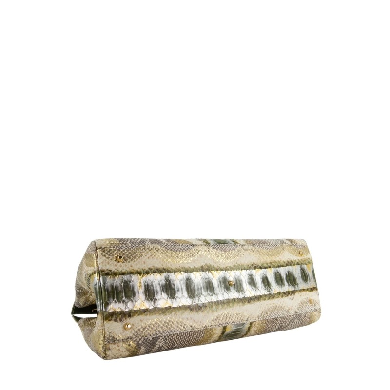 Borsa shopping in vera pelle di pitone con rifiniture in vera pelle di coccodrillo selvaggio. Bottone magnetico di chiusura. Tracolla inclusa. Doppi manici in pelle di coccodrillo selvaggio. Fodera interna in alcantara tasche interne scomparti interni. Piedini in metallo. Il colore dell'articolo può variare leggermente a seconda del dispositivo utilizzato per la navigazione.