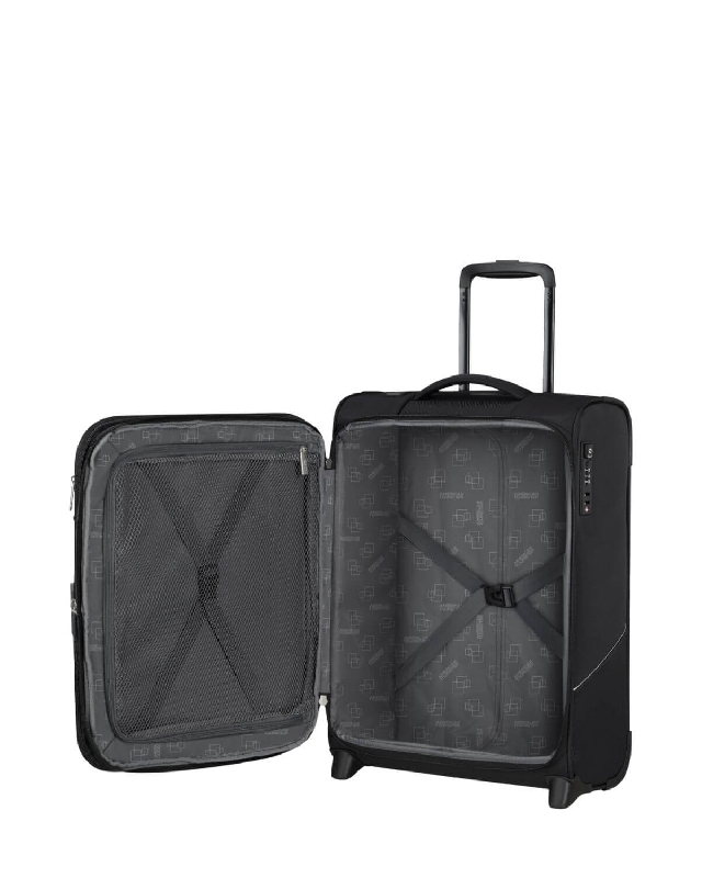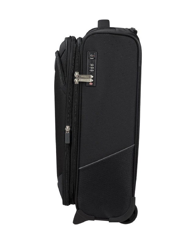 Chiusura integrata con combinazione a 3 cifre e funzione TSA. Espandibilità in tutti gli articoli su ruote. Doppie ruote per assicurare uno scorrimento agevole. Interno completamente organizzato con cinghie fermabiti in entrambi i comparti.