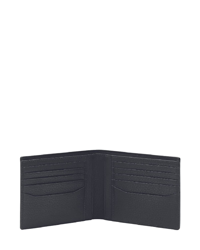 Capiente portafoglio realizzato in esclusiva pelle con goffratura naturale con 2 scomparti per banconote, 10 slot per carte di credito e 2 tasche. Protezione RFID. Logo impresso sul davanti.