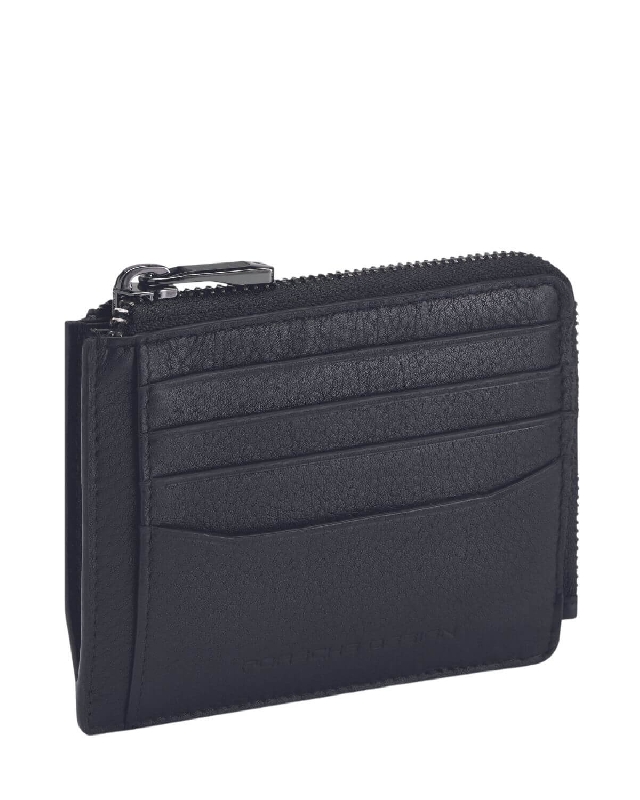 Portafoglio da uomo con cerniera e portamonete. L'esclusivo portafoglio in pelle di vitello può contenere banconote, 10 carte di credito, carta d'identità e biglietti da visita.
