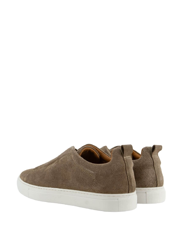 Scarpe in pelle scamosciate. Suola in gomma. Senza lacci.