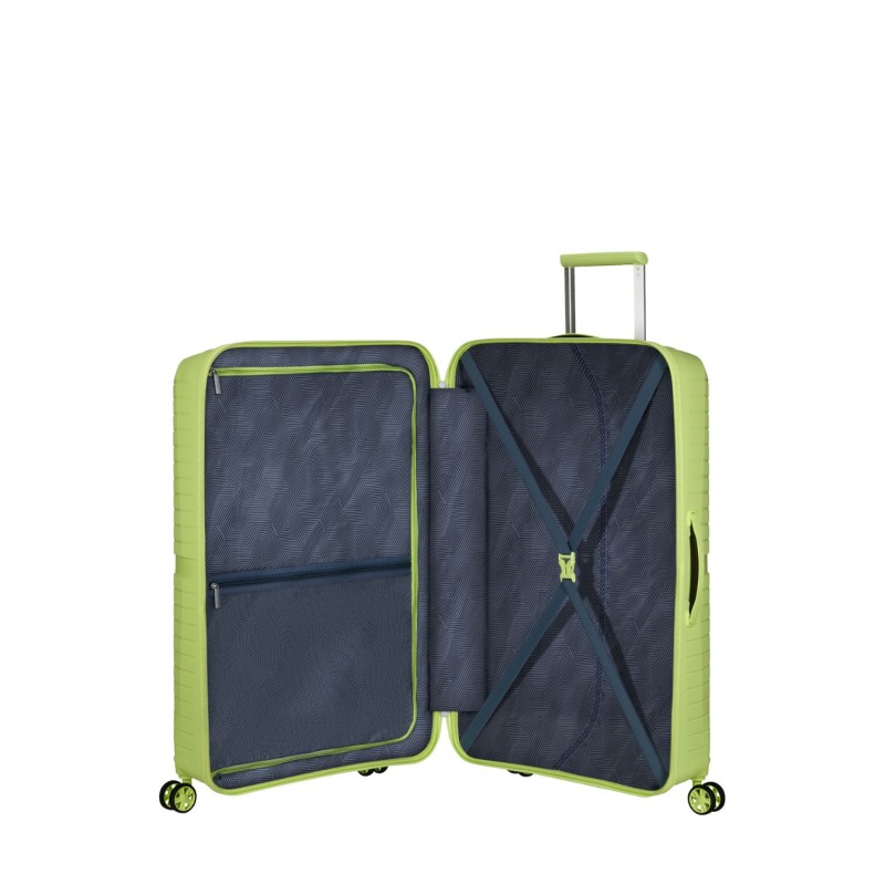 Chiusura incassata con combinazione a 3 cifre e funzione TSA integrata. Cinghie elastiche fermabiti in entrambi i comparti e divisorio in fodera con tasca in rete con zip. Volume: 101 L. Peso 3.2 kg.
