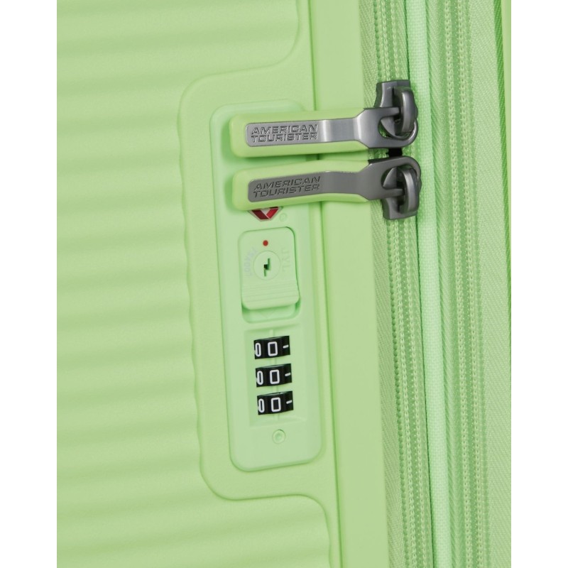 tono su tono con l'esterno. Tasca interna e divisorio in fodera con tasca supplementare con zip. Le doppie ruote garantiscono stabilità e un movimento scorrevole in ogni situazione. Chiusura fissa integrata con combinazione a 3 cifre e funzione TSA per la sicurezza dei tuoi effetti personali. Volume: 71.5/81 L. Peso: 3.7 kg.